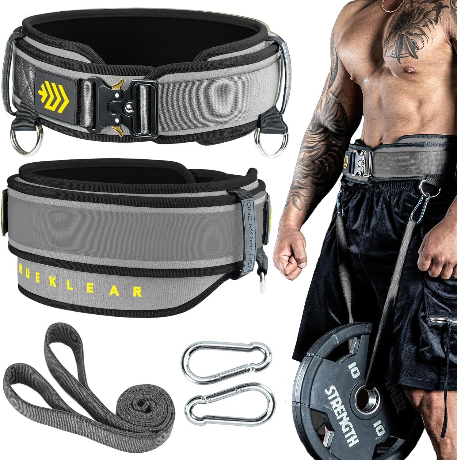 MANUEKLEAR 2-in-1 Weightlifting Belt & Dip Belt with 36.7 IN Rope, Double-Layer Weight Lifting Belts, Powerlifting Gym Weighted Belt for Pull Up Squat(Sleek Grey)